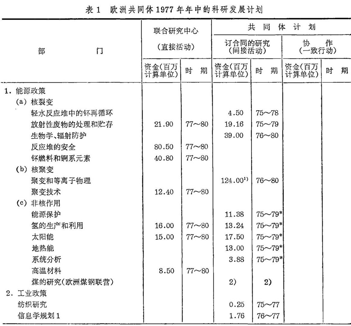 尽管存在困难和障碍的背景,共同体科研政策的诞生迄今仍被看作是个成功。联合研究中心制定了一项1977 ~ 1980年新的研究计划,提供了加强和重新调整研究中心活动的机会,并给予研究工作以新的推动力。