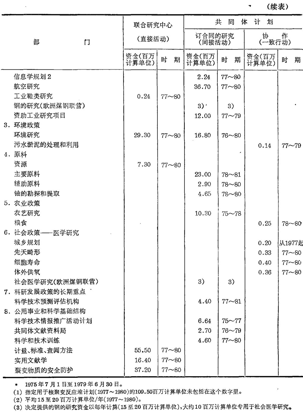 表1表示当前共同体科研发展计划的状况,列出了预定期限及预算、活动方式细目。