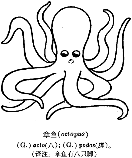 从字面上看,这些词的意思是很容易了解的。“microscopy”(显微镜)表示“看微小的东西”。“telescopic”(望镜)就是“适合看远处的东西”。“ophthalmoscope”(检眼镜)是“检查眼睛的仪器”。现在轮流使用这个词缀,就能组成新词“microscopic”(显微镜的);“telescope”(望远镜)和“opthalmic”(检眼镜的),把这些单词拆开,还原成词根,就能了解它们的字面意义。我们很容易明白:这些词根用在其他许多词中,几乎总是表达相同的意思少量词根就能派很大的用场。