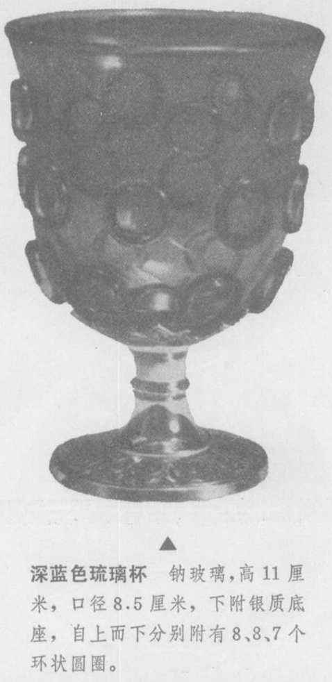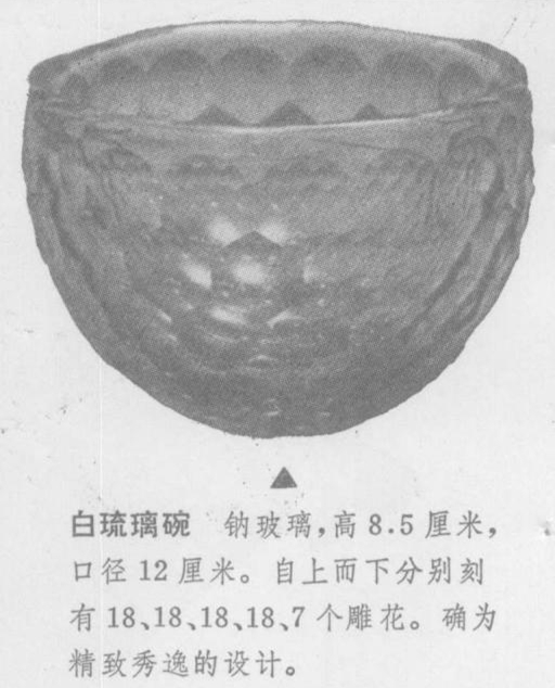 日本古都奈良东大寺正仓院珍藏的文物瑰宝之中,玻璃器皿除了以其光怪陆离的美学魅力吸引人们之外,还保持着形形色色历史之谜的秘密。这一历史秘密在科学之光的照临下,可以如实地计测它的来源。下图的白琉璃碗,根据它的造型、雕花等工艺设计的共同点,可以推测这类产品的产地肇始于美索不达米亚,东自中国日本、北起卡夫加茨(苏联西南部)、南至沙特阿拉伯、西迄意大利的4 ~ 6世纪的出土文物与传世珍宝均具这种特色。又如深蓝色玻璃杯,则为典型的波斯萨珊王朝产物,从伊拉克、伊朗、德国、意大利、中国和朝鲜的出土传世文物中,都反映了相同的艺术风格和造型感觉。