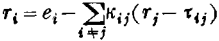 式中(rj-τij)必须大于零。τij为第i小眼刚刚对第i小眼有作用时的阈值,周围神经纤维的实际速率必须超过此阈值才有效应。κij为感应系数,它测量作用的强弱。式中ri是观察到的神经纤维i上的脉冲速率,而ei是仅仅光照感受器i所观察到的速率。