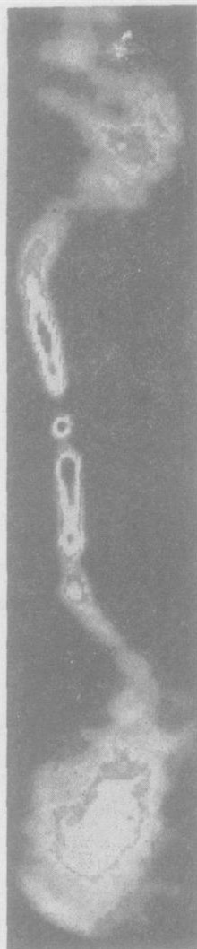 6. 射电望远镜发现的包围银河系中心核的高速回转分子云,轴示银河面的方向。