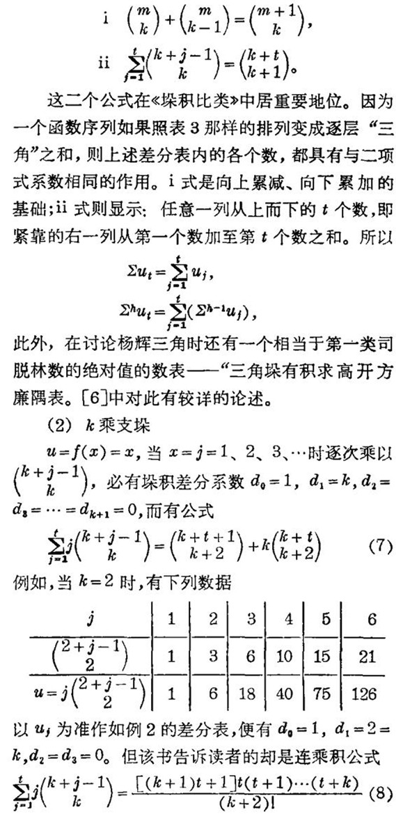 “垛积差分”还有其他功用。由这种差分的特殊对称性,可论证组合分析中两种司脱林数的合一,及推出沟通这两类“数”的数φri[8]等等。是有继承、推广和研究的价值的。