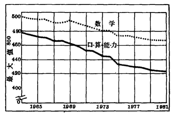 近年来美国大学所招生的新生的平均能力已经下降——这也许是增加了女学生和少数民族学生的原因。那些完成中学学业的学生中掌握微积分课程的低于百分之三十,完成中学物理课程的学生不到百分之二十五。而——真正危险——日本的学生超过美国和欧洲的同一程度的学生。美国人还担忧苏联制定的普及和强化自然科学的计划。
