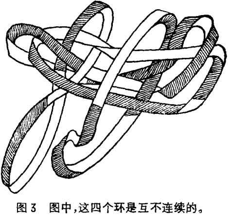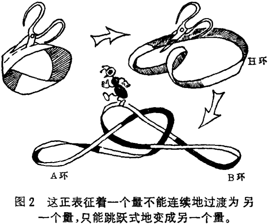 A环和B环在一个统一体内,互相独立。蚂蚁还在“终而复始”地运动着,但它绝不能从A环爬到B环,它要到B环,只能跳跃(图示)。