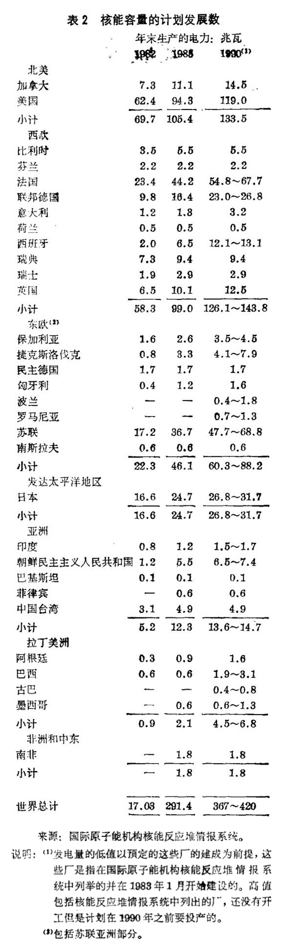 然而,即使在美国,核电的装机容量预期在1982 ~ 1990年会成倍增加。预测法国、联邦德国、日本、西班牙以及苏联增加得更快一些。而且,在苏联,核能地区性热电站已建立在高尔基(Gorki)和沃罗涅什(Voronesh)城和敖德萨的综合生产厂。