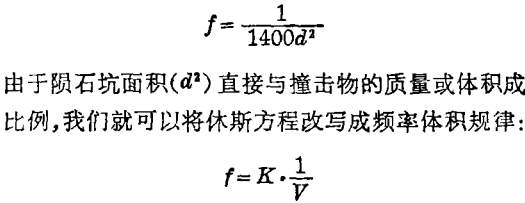 在研究地球上的陨石坑时,休斯(1979)发现了一个撞击频率与陨石坑直径(d,用公里表示)的关系式: