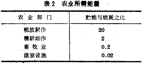 本世纪初的粗放耕作与农作物主要贮存的太阳能有关。而能耗并不大,比率为20。