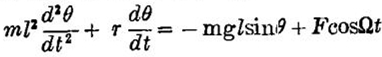 这类混沌行为的典型例子,为一个阻尼摆(锤)受一个周期外力所推动。描述此运动的微分方程极简单。若摆的角位置变量为,质量为w,长度为I,则方程是: