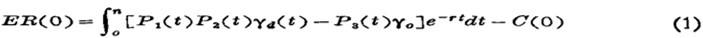这里ER(0)代表在计划离开之前,即t=0时预期到的国际性迁徙的净补偿。净回报是与决定迁徙有关的七个基本因子的一个函数,其中头三个因子决定在国外劳动得到的预期收益。P1(t)是移民在目的地国家各地停留期间,躲避驱逐的概率,对合法移民来说,它总是1.0,而对无护照移民来说,它在0到1.0之间变化;P2(t)是在时间t内,在目的地国家得到一个工作的概率,它大致由就业率周期显示出来。γd(t)是在目的地国家工作的一个移民可望挣得的收入,是在时间t=0到n内,一般平均收入的一个典型的归纳(扣除了在遭驱逐的情况下所受到的罚款)。