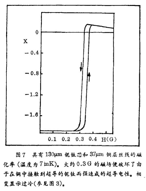 由十分之几毫米厚的铌芯和0.1毫米厚的铜层所组成的一根丝线上测得的磁化率的性质表示在图5中。