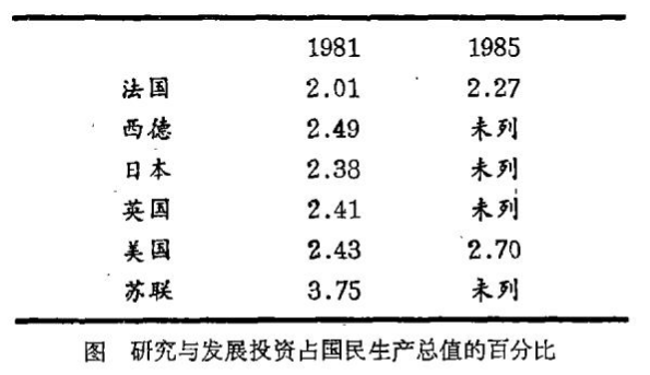 中国还没有关于研究与发展方面资金投入的系统数据材料。国赛科委正在致力于“FAST”的发展(即“科技的预测和评估”)——它是模仿经济合作与发展组织的,特别是模仿美国的。最近几年来,中国在提高研究和发展基金方面作了很大的努力,但据估计,它的比例还是不到国民生产总值的1%。
