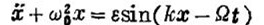 描写。方程右侧的力包含无限多模式。它描写一个“被抖动的”振子(a“kicked” oscillator),抖动的周期为2π/Ω。