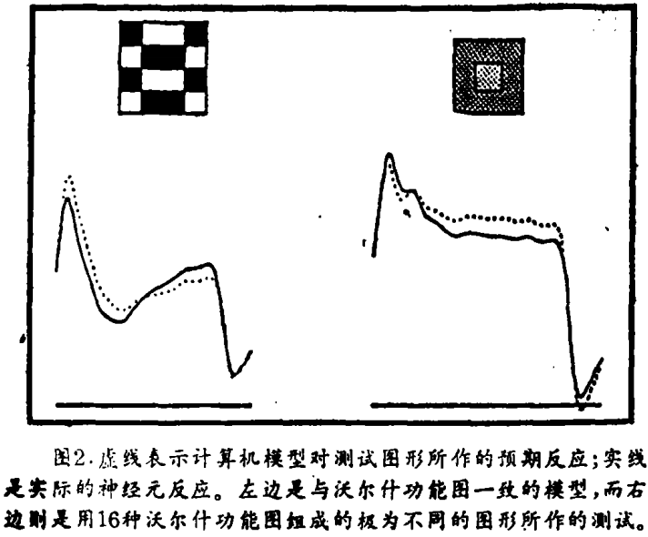 经过4年多时间进行了数以千计的测试,奥普蒂根和里奇蒙记录了脑视皮层中单个神经元对每种沃尔什功能图的反应。他们根据这些资料准确地证明了两个重要问题:首先,脉冲序列图并不是随机变量;其次,这些图形携带着信息。