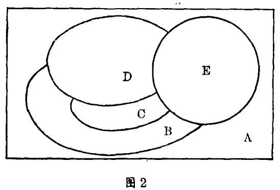 那么,为一幅正常的地图着色所需的最少数目的颜色是多少?2种、3种颜色都不够。5种颜色实际上足以(1890年已严格证明这一点),如图2所示。1852年格思里(F. Guthrie)提出如下猜想:对平面或球面上的任一地图着色,至多用四种颜色就可以使两个相邻(即有一段公共边界)的国家或区域的颜色不相同。