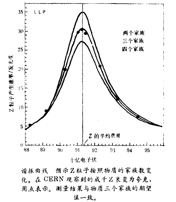 现在的实验表明,这样衰变到新的荷电粒子的事情并没有发生,因此我们能够肯定:这样的新粒子并不存在,要不然它们的质量大于Z质量的一半。不过,如果较高质量的家族真的存在,那么(如我们前面论证的那样)它们的中微子仍然可望具有较Z质量之半还要小得多的质量。所以,Z还是会衰变到这些通道。尽管不能在这些实验中直接看到中微子,然而这些中微子物质会对Z的宽度作出贡献,从而使它们成为可观察的粒子。这就是本文所报告的能够通过实验数出物质家族数的原理。