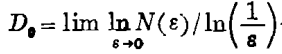 实际上早在1919年由豪斯道夫(F. Hausdorff)引入的维数的严格定义允许出现分数维数。其他几种定义,如信息维、关联维等等,虽然在数学上是很严密的,可是实际应用却各有局限与不足之处,比较简便的方法是以半径为ε的D0维球去包覆分形体,当t→0时确定包覆所需球的最小个数N(ε),再由公式