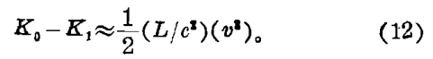 他认为这对可称质量也是准确的,很清楚,我们不用近似可以从(13)式求出K0-K再和(11)式(出自于质 - 能论文)比较而得出(12)式。显然,爱因斯坦在1905年认为利用近似比专门加上适用于可称重物体的额外假设(13)式更合适。
