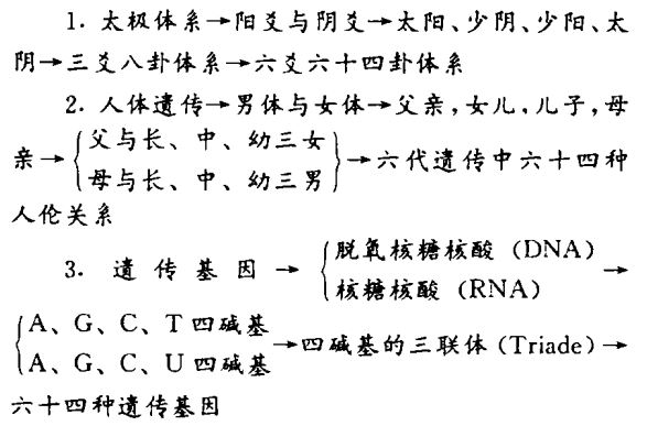 下面再分述太极易卦体系与遗传基因体系的相互同构学说。