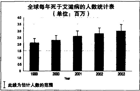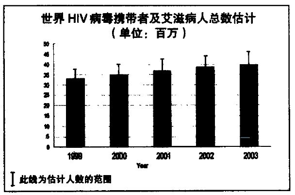 艾滋病是人类历史上危害最深广灾难最严重的传染病之一。自美国1981年诊断出首例艾滋病患者以来,艾滋病病毒在全球范围内的传播速度惊人,目前已有200余个国家和地区受到艾滋病的严重威胁。联合国艾滋病联合规划署2003年11月25日公布的最新统计数字显示,全世界艾滋病病毒携带者和艾滋病患者总数已达4000万(3400万~4600万),其中成人3700万(3100万~4300万),15岁以下儿童250万(210万~290万);2003年,全世界新增艾滋病毒感染者500万(420万~580万),另有300万人(250万~350万)被艾滋病夺去生命,平均每天有近1.5万人感染上艾滋病病毒。非洲撒哈拉以南地区是艾滋病的重灾区,艾滋病病毒携带者和艾滋病患者人数高达2820万,艾滋病成为该地区的头号杀手;紧随其后的是东南亚和太平洋地区,病毒携带者和患者为740万。在累计报告的艾滋病病毒感染者中,20到39岁的青壮年占感染人数的80%,而亚洲的情况是15~49岁者是主要发病人群;在全球疾病死因顺位中艾滋病名列第四。因此艾滋病的肆虐已使许多国家失去了大量年轻人和劳动力,平均寿命迅速缩短,家庭贫困化以及疾病花费上升,一些国家的经济甚至濒临崩溃。