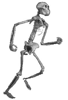 从四足行走转换到两足行走的行动方式要求身体的结构有很大的改变。例如与黑猩猩和大猩猩相比,人有较长的后(下)肢,较短的前(上)肢,较短而宽的骨盆,较短和不弯曲的指(趾)骨和缩短的腰部,南方古猿阿法尔种是已知的、最早的人科成员,无疑是两足行走的,但仍保留着一些树栖的性状。