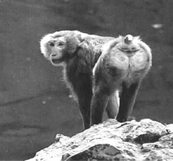 现在,用恒河猴所做的一个实验表明,它们也有进行概率推算的能力。研究人员对两只猴子进行训练,让它们在看过由4种形状组成的一个序列后从一对标有颜色的目标中做出选择,这个序列决定着其中一个目标获得奖励的概率。这两只猴子学会了利用从不同形状组合中获得的信息来推断哪个组合将预示着奖励。如果选择红色组合它们将获得更多的奖励,它们就会选择红色的组合;如果绿色能够使它们获得更多奖励,它们会毫不犹豫地选择绿色组合;而当两者获得奖励数相当是,它们就会随便挑一个。记录显示,大脑中顶骨皮层的神经元参与了这些判断背后的概率数量的加减运算。