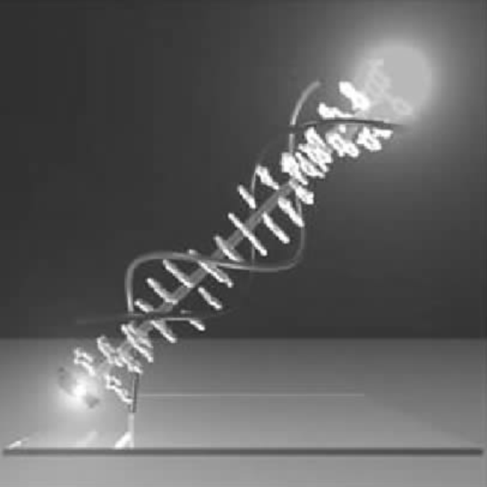 DNA双螺旋链的直径大约在2纳米左右,利用这种纳米级的“电线”,可以制作出类似半导体的超微型电子设备。研究小组在人造玻璃衬底上铺设了具有10~100对碱基的DNA片断,在一端使用光增感剂,另一端放置荧光色素,接着在玻璃衬底中间进行紫外线照射。于是,从光增感剂那端产生正电荷,向另一端移动并与荧光色素发生反应;其间,可以观测到荧光消失的现象。同时根据碱基排列的顺序不同,电流流动的速度也会发生改变。