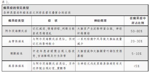 然而,研究人员面对的是一个令人非常困惑的目标,比如其主要形成原因,甚至以什么样的病理学原理来定义这种疾病,至今仍然没有明确的答案(见表1:“痴呆症的常见类型”)。30多年前,“阿尔茨海默氏症”并未被广泛用于描述这种疾病,直到1976年,NIA的创始人罗伯特·巴特勒(Robert Butler)才首创了这一术语,部分原因是便于为这种疾病的研究吸引研究经费:人们将一些老年人渐渐变得健忘,或性情变得像小孩一样的综合性病症称为阿尔茨海默氏症,当时并不认为这是一种有可能预防或治愈的疾病,而是随着年龄老化产生一系列变化的一个内在组成部分。