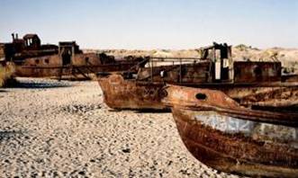 20世纪中叶,前苏联工程师在流入咸海的河上筑坝,使咸海几乎消失,取而代之的是含盐量高、满是灰尘的荒地和被遗弃的渔船。该地区的水产捕捞业已经逐步萎缩,很多人失去了生计来源,而风尘也在威胁着人们的健康。