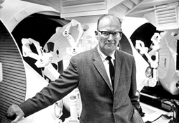 1968年时的阿瑟·C·克拉克在电影《2001:太空漫游》的布景中