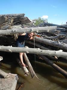 在加拿大西北地区奴河上研究漂流木的娜塔莉·克莱默
