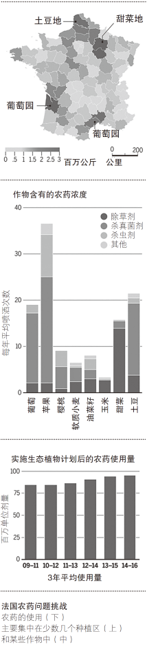 自那以后,法国政府花费了近5亿欧元实施这项名为“生态植物”(Ecophyto)的计划。该项目建立了一个由数千农场组成的网络,测试减少农药使用的方法,提高国家对害虫和植物疾病的监测力度,并对减少农药使用技术的研究提供资助。政府还出台了对农用化学品征税的政策,以减少农药销售量,甚至禁用多种农药,这令许多农民大为恼怒。