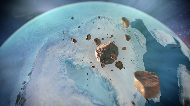 小行星碎片落向格陵兰岛的计算机可视化图像