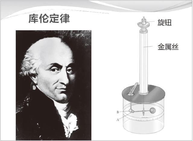 在稍早的文章中,库伦记录了11项实验,报告了几年来他对金属丝和扭力的关系所做的研究。由此得到的关于金属材料的知识,帮助他发明了一种“秤”,可以用来测量非常小的力。1785年,在一系列7篇论文的第1篇中,库伦描述了他利用扭力秤测量同性静电荷之间的斥力的3次实验。在第1次试验中,两球之间的斥力造成的偏转是36°,利用扭力秤,库伦得出这一偏转所相当的作用力为1/3 400的“格雷姆”,1“格雷姆”约为0.064 8克。第2次取18°,这时“两球的距离只是第1次的一半,可是后者的斥力却4倍于前者”。在第3次试验中,两球相距只有8.5°,结果全部扭力4倍于第2次试验,而第3次试验中两球的距离,则比第2次试验的距离的一半还少半度……这3次试验的结果说明,两球带有同性电以后,它们之间的斥力,与两球距离的平方成反比。