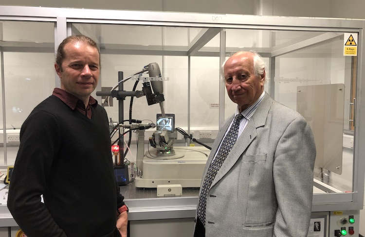 研究的共同作者西蒙·科尔斯(Simon Coles,左)和特里·思雷福尔在南安普顿大学的英国国家晶体学服务中心开展了一些APH结构检测工作