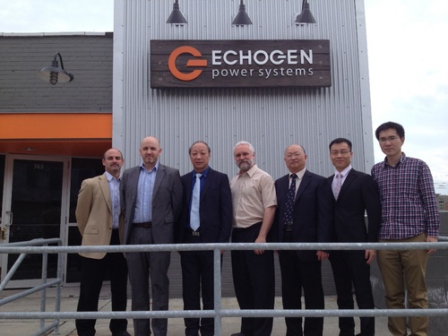 2014年5月,范世望随公司领导到美国Echogen公司进行考察,这家公司主要研发超临界CO2为介质的循环动力发电设备。范世望介绍,从瓦特发明蒸汽机开始,经过几百年的发展历程,大部分能源动力装备都是以水蒸汽为介质来驱动的。而超临界CO2循环技术是一种比传统蒸汽循环发电更为先进的能源动力循环方式。这种新技术的研发,美国目前走在世界的前列。美国能源部(DOE)从2000年后不断资助该项技术的研发,目标是为核电站、太阳能光热发电、余热利用等研发下一代动力循环技术。Echogen公司就是处在这个领域前沿的一家企业。