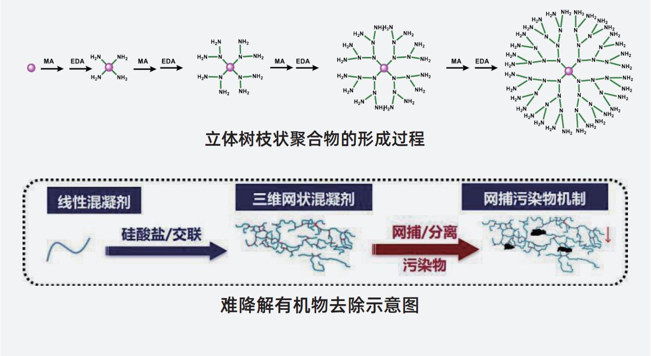 基于上述想法,李风亭将线型净水剂分子通过交联的方式,制备成了三维网状结构的净水剂。这些网状结构可以是树枝状的聚合物,也可以是球型结构的聚合物,它们通常不会像线型结构那样发生自缠绕卷曲和沉积现象。