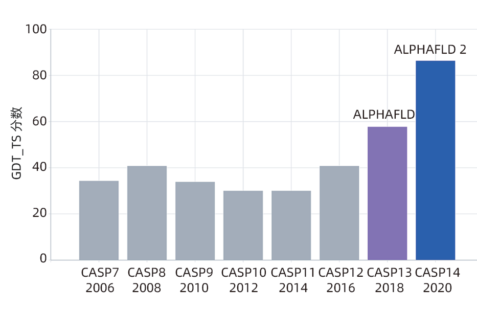 AlphaFold软件显著提高了计算蛋白质折叠的准确性,正如它在CASP(对蛋白质结构预测进行评估,被誉为蛋白质结构预测的奥林匹克竞赛,每两年举办一次)每届竞赛中的表现所证明的那样
