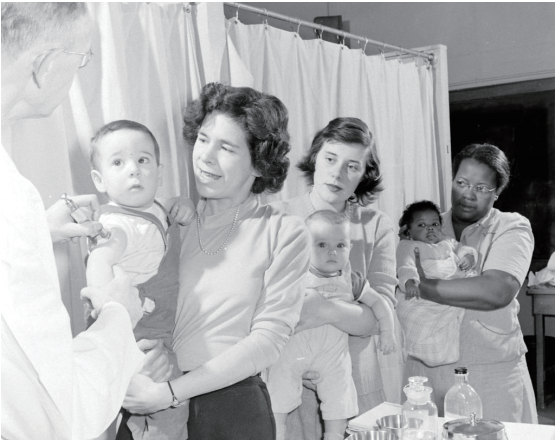1949年,奥尔巴尼医院结核病科主任鲁本·埃里克森(Reuben Erickson,左)为婴儿注射卡介苗