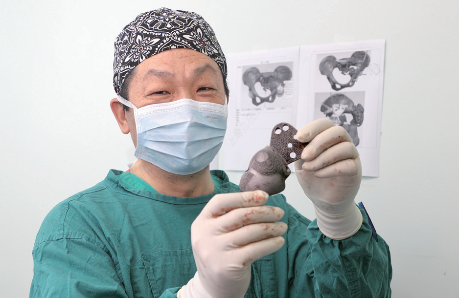 重建假体是第二大难关,因骨盆肿瘤切除后缺损形态各一、没有现成的假体可以提供,只能医工合作定制。过去这样的技术仅在少数发达国家能够实现,定制假体费用一般要在10万美元以上,定制周期一般需3个月左右。国内的骨肿瘤病人无法承受高昂的定制假体费用,时间上也等不起。