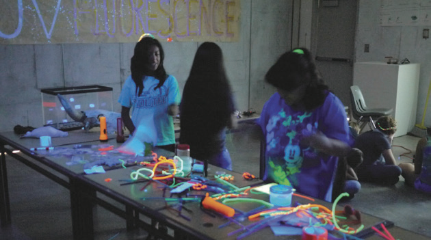 “自然的色彩”项目中对艺术有兴趣的学生使用显微镜、摄像机和分光仪来学习荧光、动物视觉、极化、颜料的光谱性质、光干涉和结构色彩的相关知识。该项目支持那些有兴趣探索艺术和科学之间关系的学生、家庭和教育者,在亚利桑那州图森和阿拉斯加州费尔班克斯举办了多次面向女学生的暑期学院