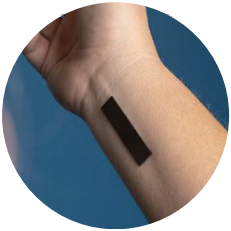这项技术的最主要适用对象是糖尿病,预计到2030年,全球将会有5.78亿人被诊断患有糖尿病,亟需一种便携设备以非侵入的方式监测血糖水平。一种方法是利用毫米波和近红外感应的无线电磁场,患者手指的电压变化可能与血糖水平相关。另一种方法是在衣物中置入可穿戴电子设备,用微波范围的电磁波检测血流中的葡萄糖水平。第三种方法是采用基于“文身”的电路,用电极来抽取少量组织间歇液(正常情况下会从毛细管中渗出),再评估这些“汗水”里的葡萄糖水平。相似地,类似文身的电路也能从汗水中分析乳酸盐的变化,这项应用获得了体育运动产业的投资。