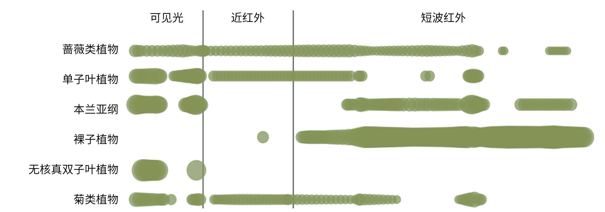 卡文德-巴雷斯和舍普曼等人还发现,树叶反射的阳光可以揭示不同植物间的进化关系。他们在2020年发表于《新植物学家》(New Phytologist)杂志的文章中指出,通过比较光谱特征可获知某片森林中哪些树木间关系最密切。他们的新发现表明,卫星传感器或许有朝一日能绘制出森林的遗传变异图。