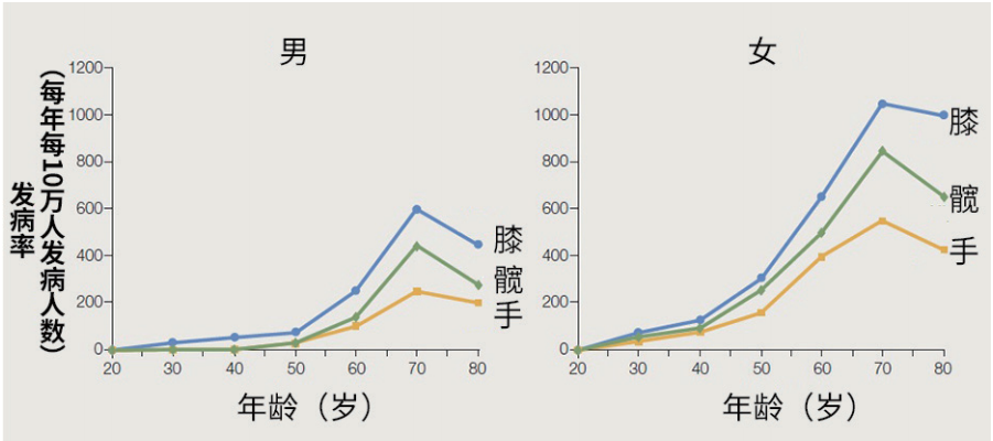 骨关节炎发病率随年龄变化
