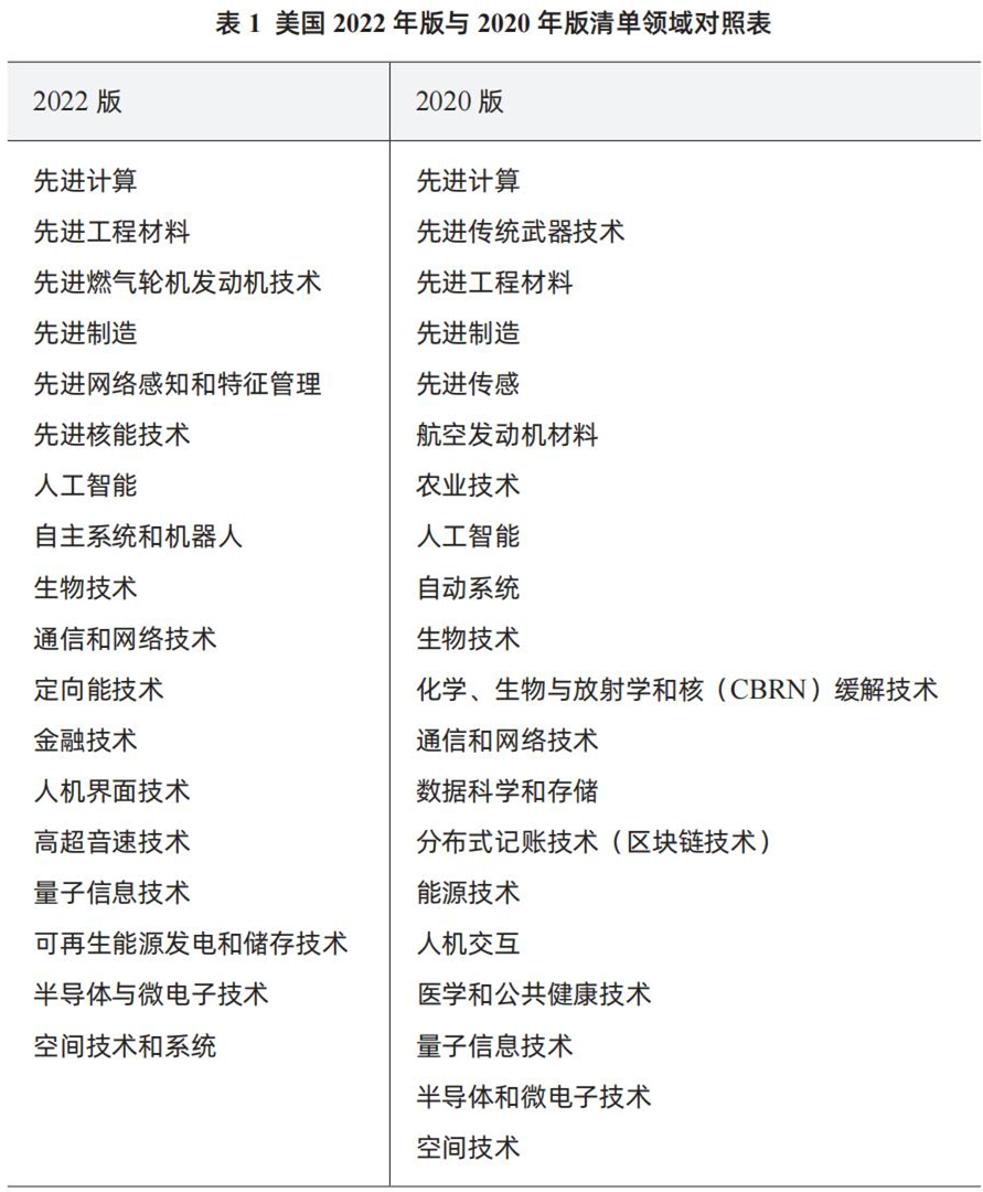 链接:美国2022年版《关键和新兴技术清单》具体内容
