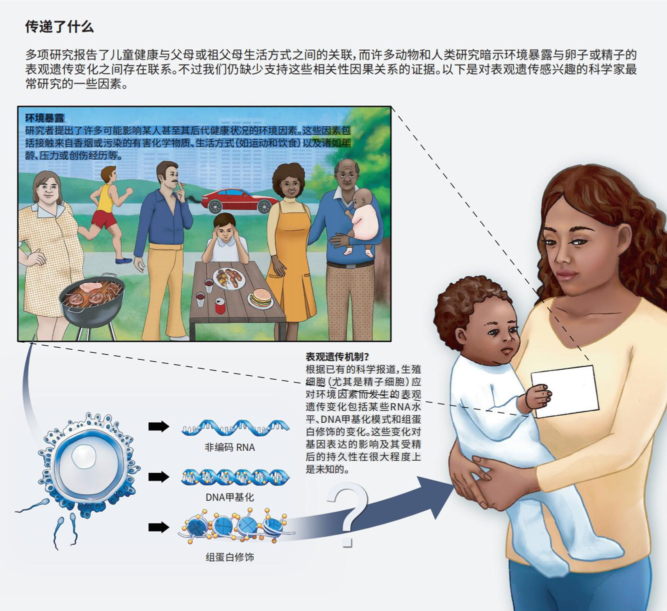 瑞士苏黎世大学和苏黎世联邦理工学院的神经表观遗传学家伊莎贝尔 · 曼苏伊(Isabelle Mansuy)表示,这种更全面的表观遗传学方法越来越受研究者欢迎。曼苏伊最近回顾总结了100多项关于环境暴露的潜在代际和隔代影响的研究。用他的话说,表观遗传的途径可能非常复杂,并非严格的一对一DNA甲基化拷贝,“我希望人们不要认为只存在一种机制”。