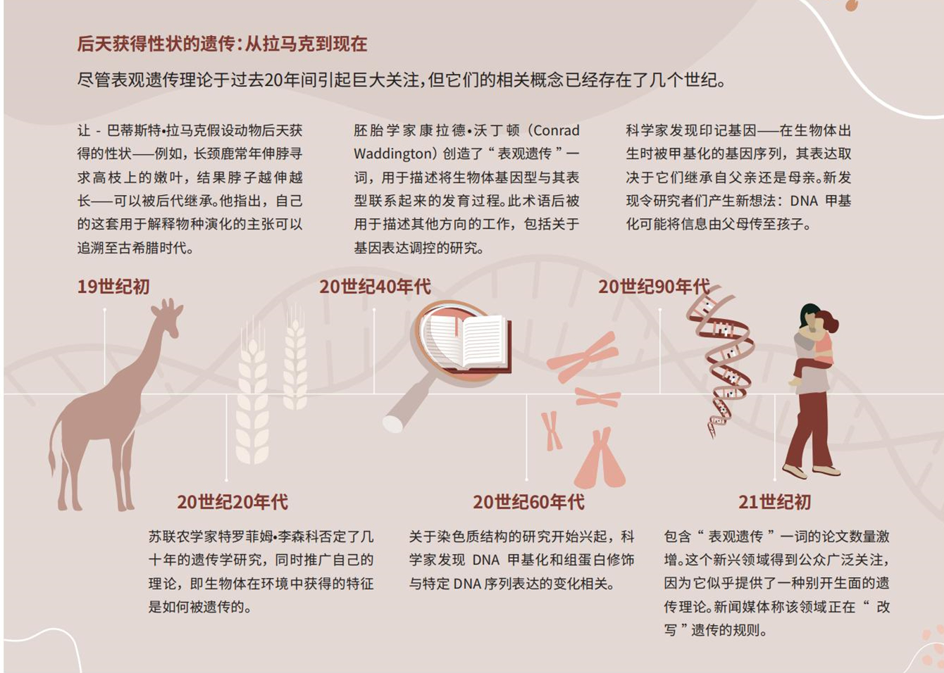 到了21世纪10年代中期(表观遗传学研究的热度在这个时期达到高峰),美国马萨诸塞大学医学院的研究员奥利弗 · 兰多(Oliver Rando)于《科学家》(The Scientist)杂志发表观点称,我们发现拉马克等人那个原本不受欢迎的理论“可能并非完全不合时宜”。