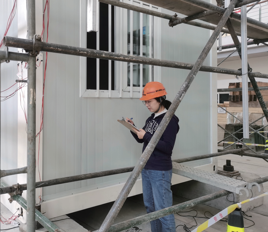 予冰说其实她2022年还做了一件比较有挑战的事。东南沿海是受台风影响最严重的地区之一,靠海的临港滴水湖空旷地带受台风影响很大,台风一来最受影响的是那里的产业工人,这些工人目前主要住在工地上集中建造的厢式钢结构中,台风一来大批工人只能转移到附近一些场馆,每次转移的人力、物力、资金成本都很高,现在又增加了防疫安全问题。目前有一个急迫的需求是需要通过试验、分析,为厢式钢结构的整体抗风性能评估提供依据。这是一个非常现实的问题,也是一个挑战。目前居住在这样的厢式钢结构内的产业工人有2万多,根据测算到年底最高峰时将达近10万人。受命负责这项工作的冷予冰和项目组同事先进行风洞实验,然后做了足尺厢式钢结构包括围护结构的力学性能试验,同时他们到临港项目现场做了大量的调研,结合数值模拟分析对其抗风性能做出评价。我好奇集装箱这样体量的物体怎么做风洞实验。予冰解释他们是使用缩比模型做的风洞模型实验,探测风压的分布及各个方向的受力情况,然后按照等效原则将风荷载换算成相应比例的集中荷载去做足尺结构的力学性能试验,利用作动器模拟台风的等效水平荷载,得出抗风性能测试结果。我去访问的一周多前予冰他们刚完成风洞试验,接下来马上要做足尺的结构力学性能试验。“如能在这样的荷载下不受损,就表示它能承受相应的风力。这就是用数据来说话。”类似临港这样临危受命的工程上有需求的活对他们来说并不鲜见,因为这些需求背后都是城市安全问题,是相通的。