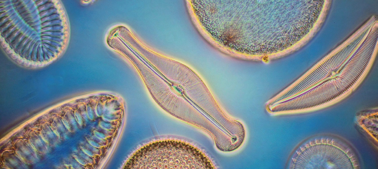 但是当波塔波娃拿出一张玻片放到显微镜镜头下时,玻片里的内容就让人眼花缭乱起来:几十种硅藻形状各异地固定在了玻片里。硅藻是微小的单细胞藻类,包裹在坚固的二氧化硅质细胞壁里,只要有水的地方就能找到。