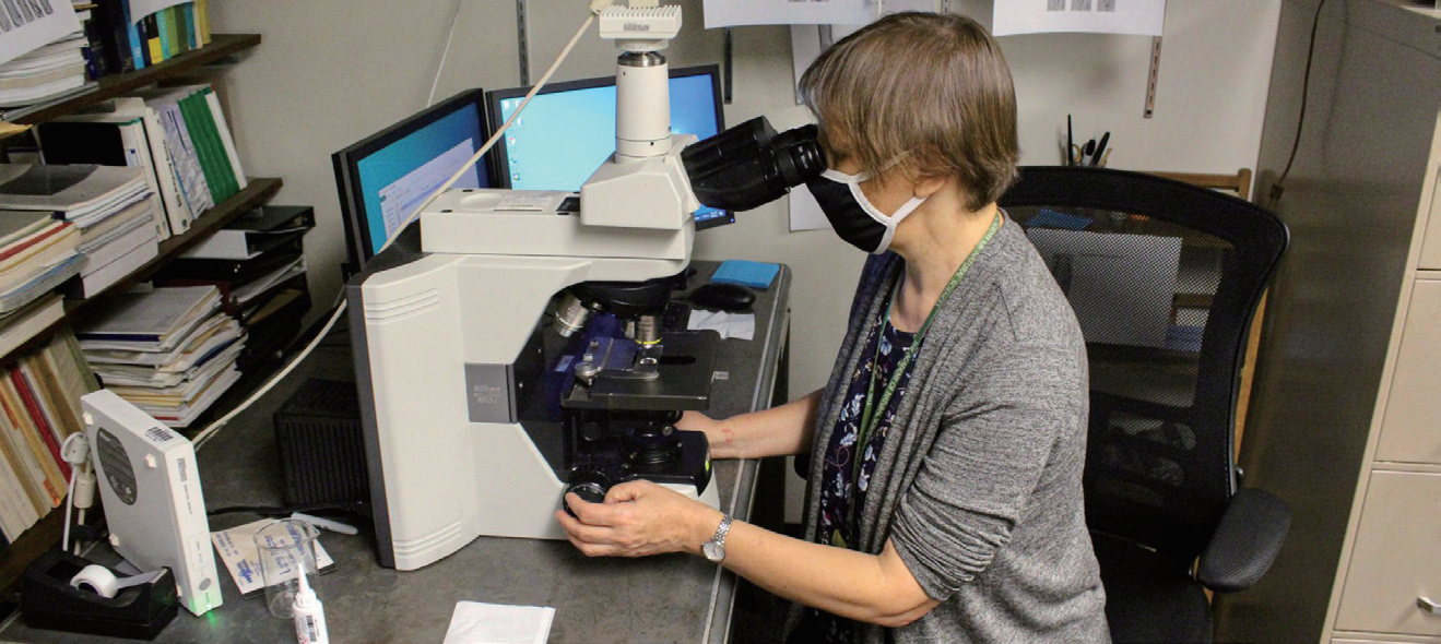 德雷塞尔大学自然科学院的一间实验室里,波塔波娃正在检查从海岸取样的硅藻